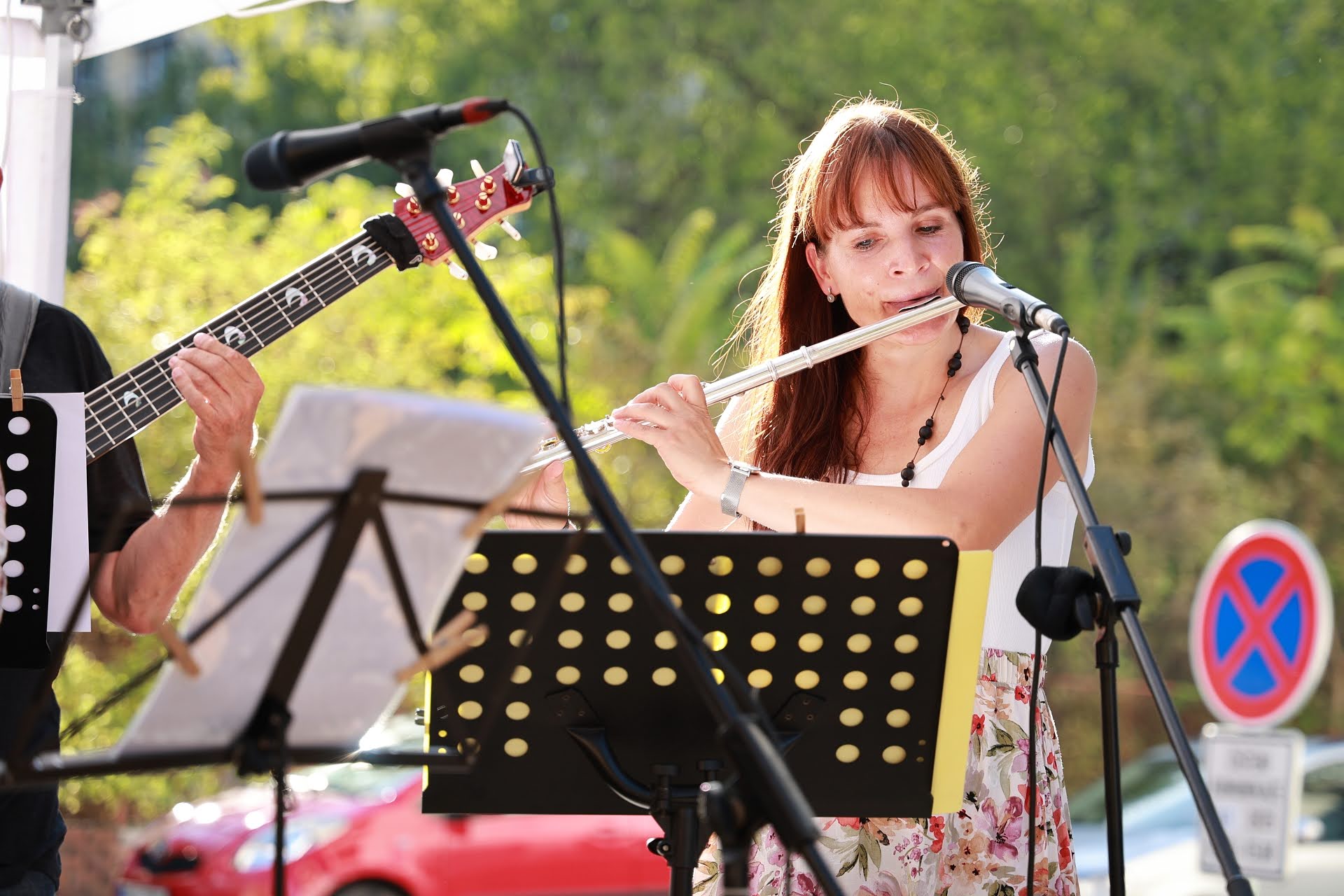 Zpěvačka Veronika Fröhlichová a saxofonista Pavel Dvořák v Balbínové poetické hospůdce